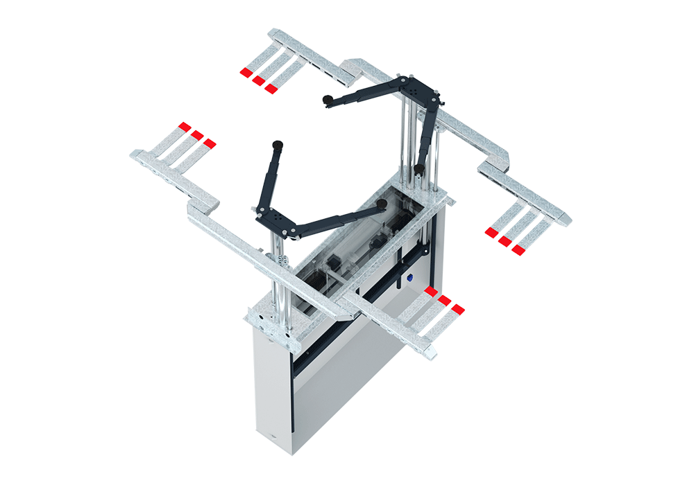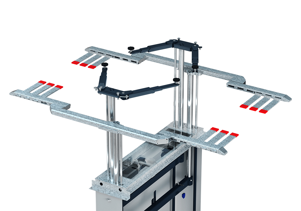 The system is equipped with dual telescopic swivel arms, allowing for the free lifting of both axles simultaneously. This feature makes the machine a preferred solution for quick inspection and diagnostic work.