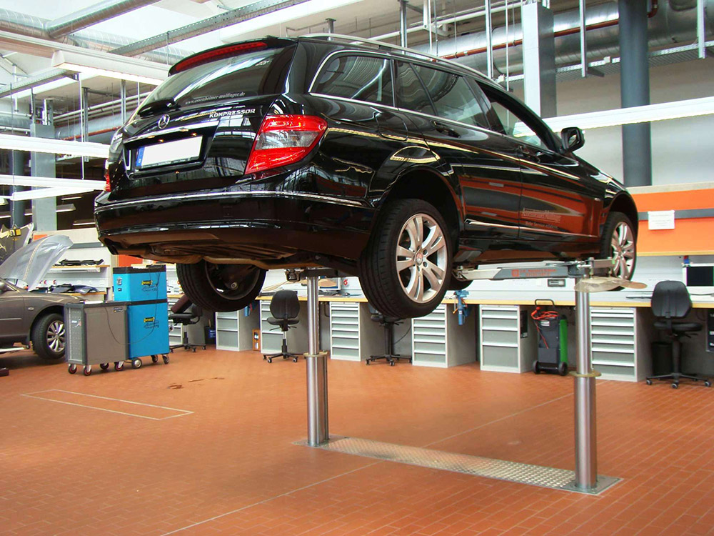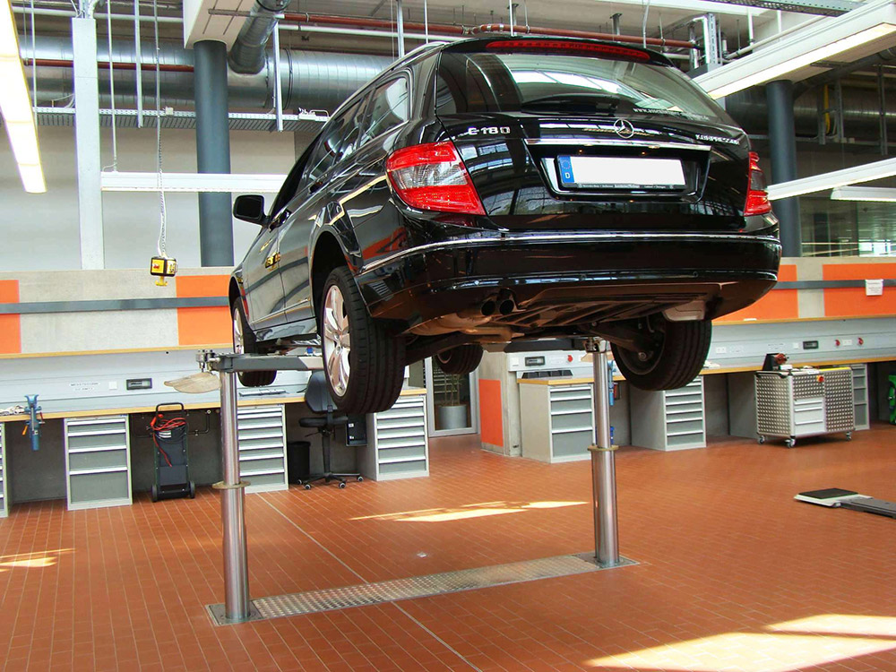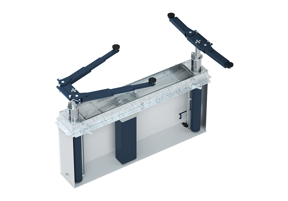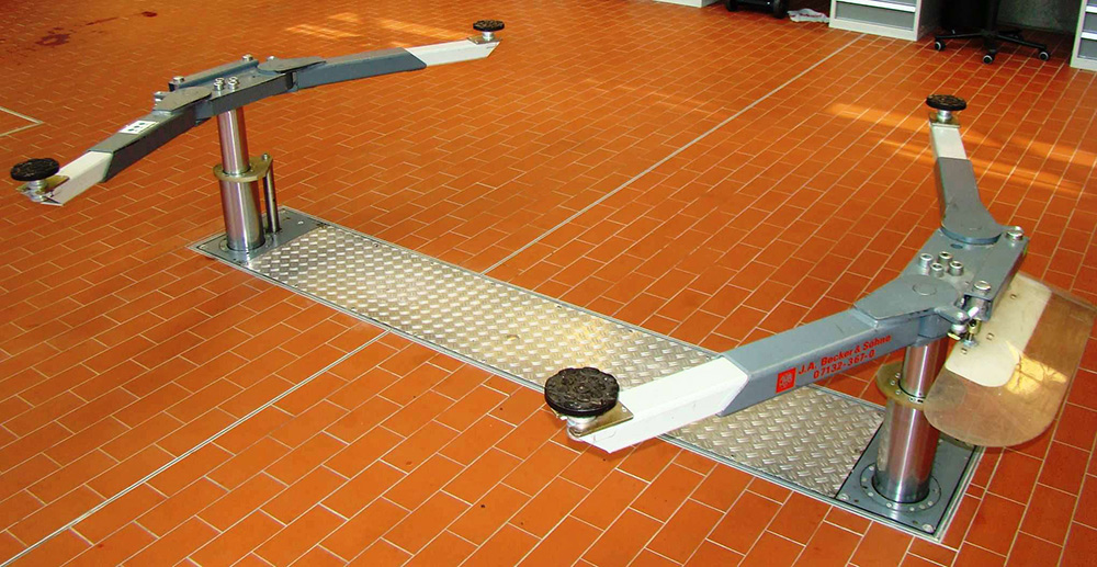 The 1300 mm installation depth is its main attraction. This depth allows the lift to sink almost completely below floor level, enabling vehicles to drive easily onto the lift, with minimal or no need for ramps. The underswing height of only 108 mm means that even the lowest sports cars can be lifted safely without the arms touching the underside of the vehicle.