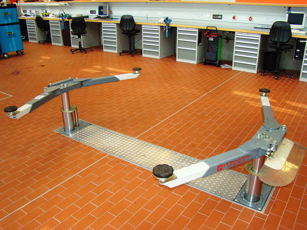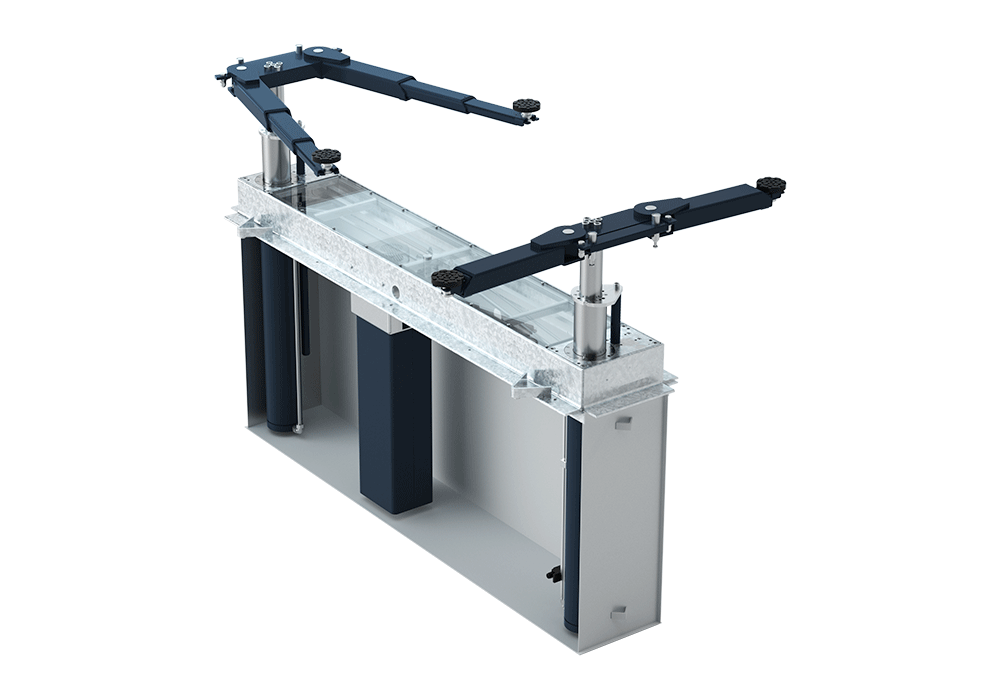 J.A. Becker & Söhne presents the TwinRam 35 S2/2300 Tele type, a patented electro-hydraulic telescopic lift specifically designed to optimally handle the most complex installation situations. Thanks to its shallow installation depth, this model offers an ideal solution for workshops where the installation of conventional lifts would be a challenge. The telescopic arms combine all the advantages of classic swing arms with the flexibility of telescopic technology, ensuring excellent accessibility and high load capacity.