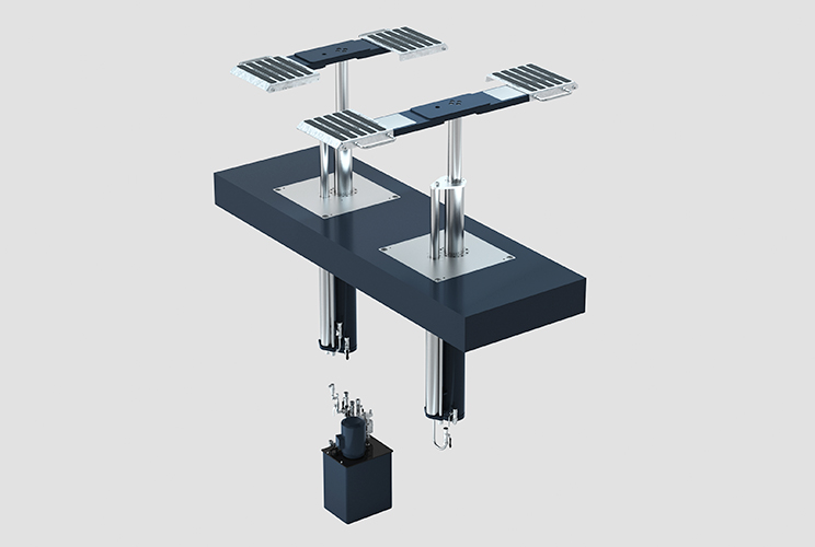 Tehergépjármű Szervizek: Nehéz tehergépjárművek emelése, ahol a pontos pozicionálás kritikus a futómű és alváz munkálatai során.