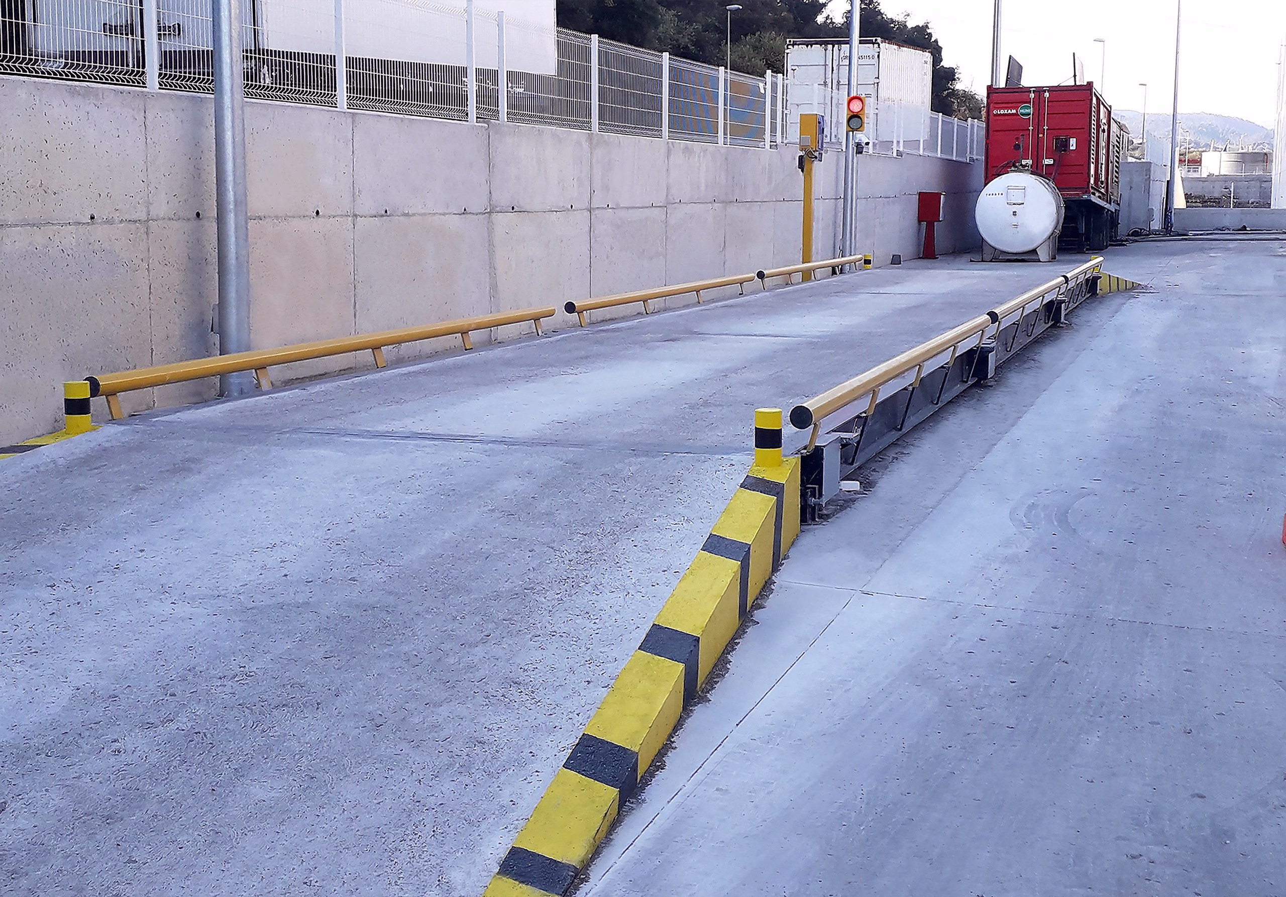 Ezek a leszerelhető, cső alakú korlátok a sík felületű föld feletti mérlegekhez ideálisak. Feladatuk a tehergépjárművek precíz centrírozása a mérőpályán a mérés alatt.